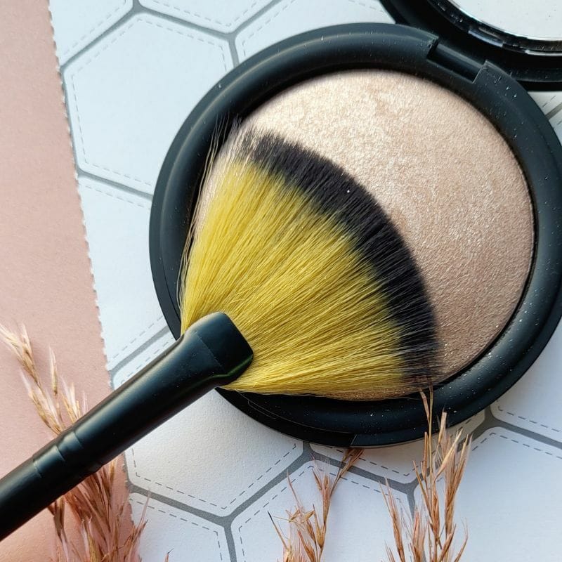 Creëer een prachtige glow op je gezicht met het aanbrengen van highlighter. De Fan Brush, een plat, waaiervormig penseel, maakt het eenvoudig om subtiel highlighter aan te brengen onder de wenkbrauwen, op de jukbeenderen, in de ooghoeken en andere delen van het gezicht om ze te accentueren. Daarnaast is dit penseel handig om overtollige make-up weg te vegen. De Fan Brush is ideaal voor het aanbrengen van highlighter en het verwijderen van gemorste oogschaduw onder de ogen. Dit penseel bestaat voor 50% uit synthetisch en 50% geitenhaar.