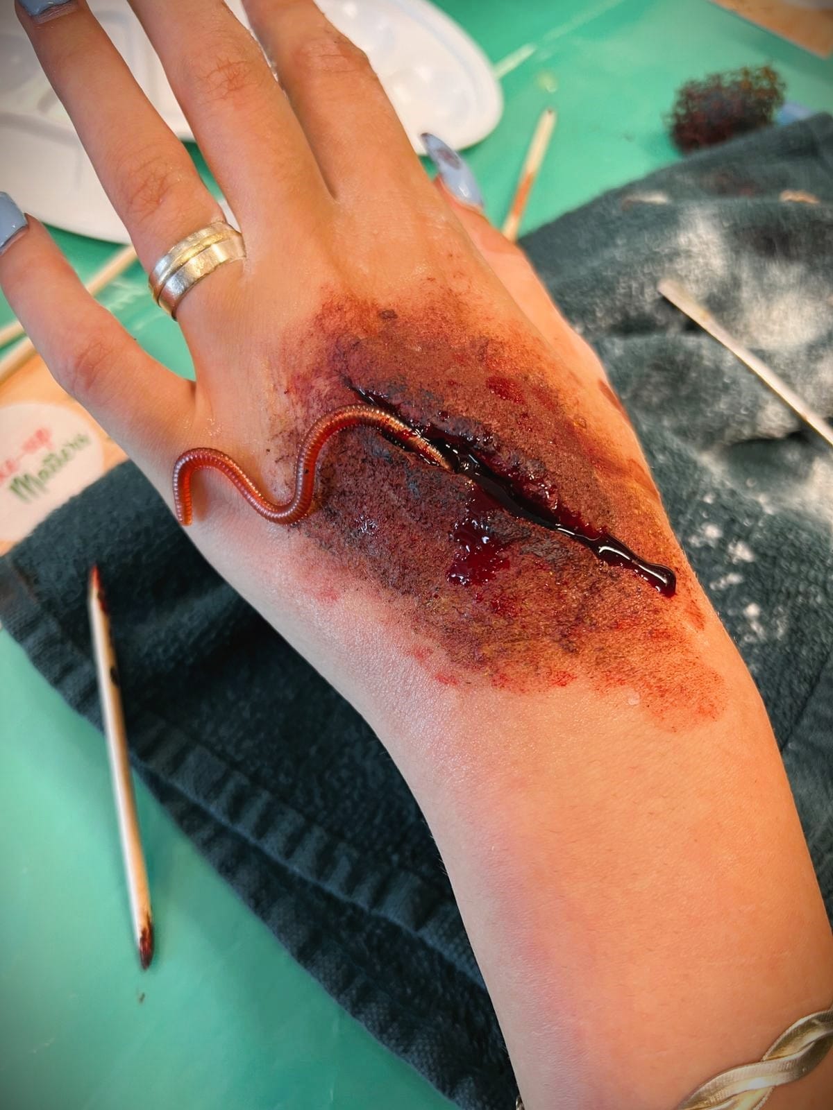 Ontdek de magie van Special Effects make-up tijdens onze unieke workshop “WONDEN LEREN MAKEN” bij Make-up Matters! Als ervaren grimeurs kunnen wij jou verzekeren dat deze workshop een onvergetelijke ervaring zal zijn. Tijdens de workshop word je begeleid door een echte professional, die je de geheimen van het creëren van realistische wonden zal onthullen. Leer de kunst van SFX (special effects) wonden, zoals je ze in films en theaters ziet. Ontdek de technieken achter het werken met siliconen, wax en latex, en leer hoe je deze materialen kunt gebruiken om indrukwekkende wonden te maken. Wees niet bang om vieze handen te krijgen! Deze workshop is geschikt vanaf 12 jaar. Wij kunnen deze workshop geven op beginners niveau, of juist voor wat meer gevorderden. Een workshop op maat dus!